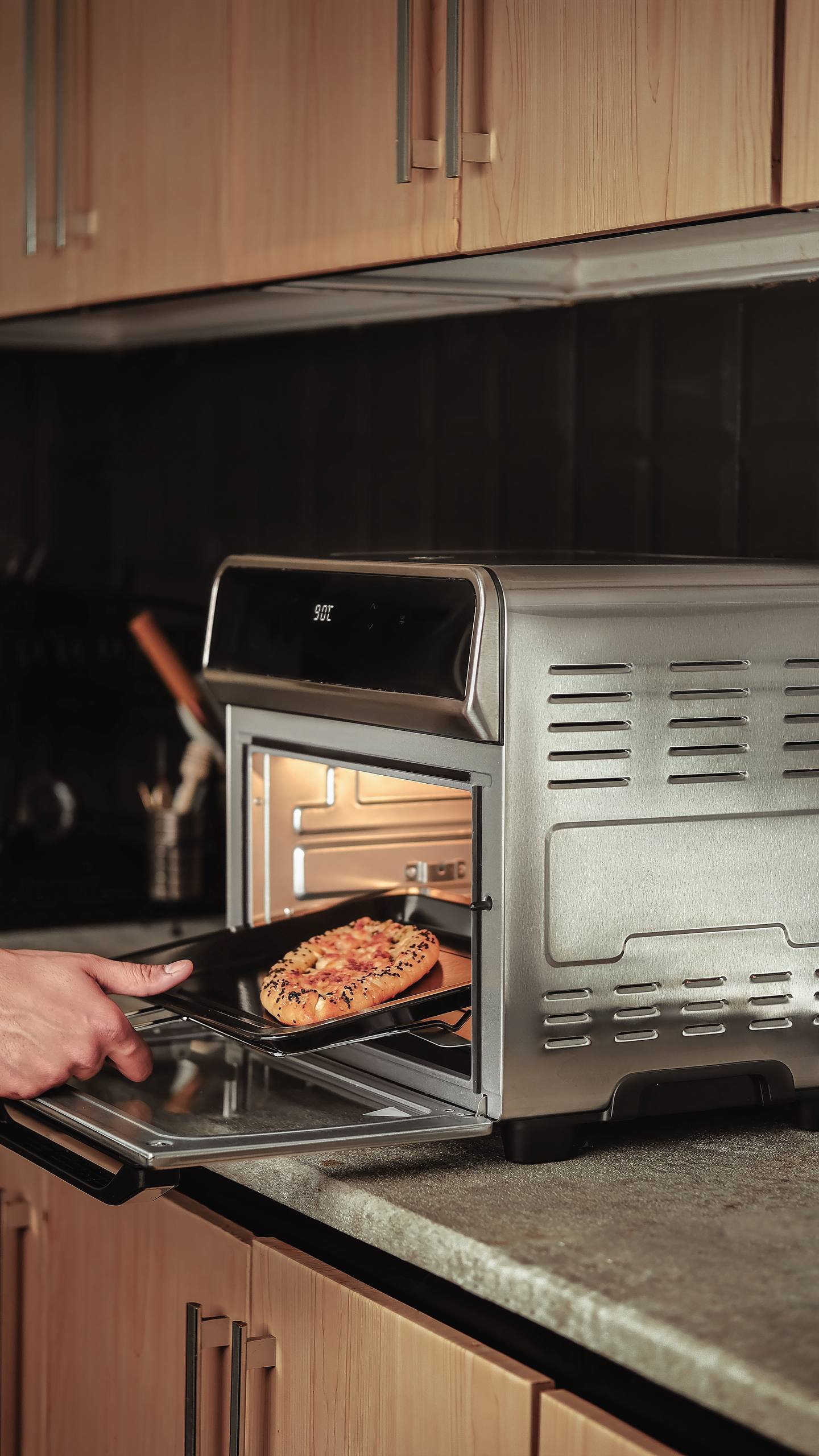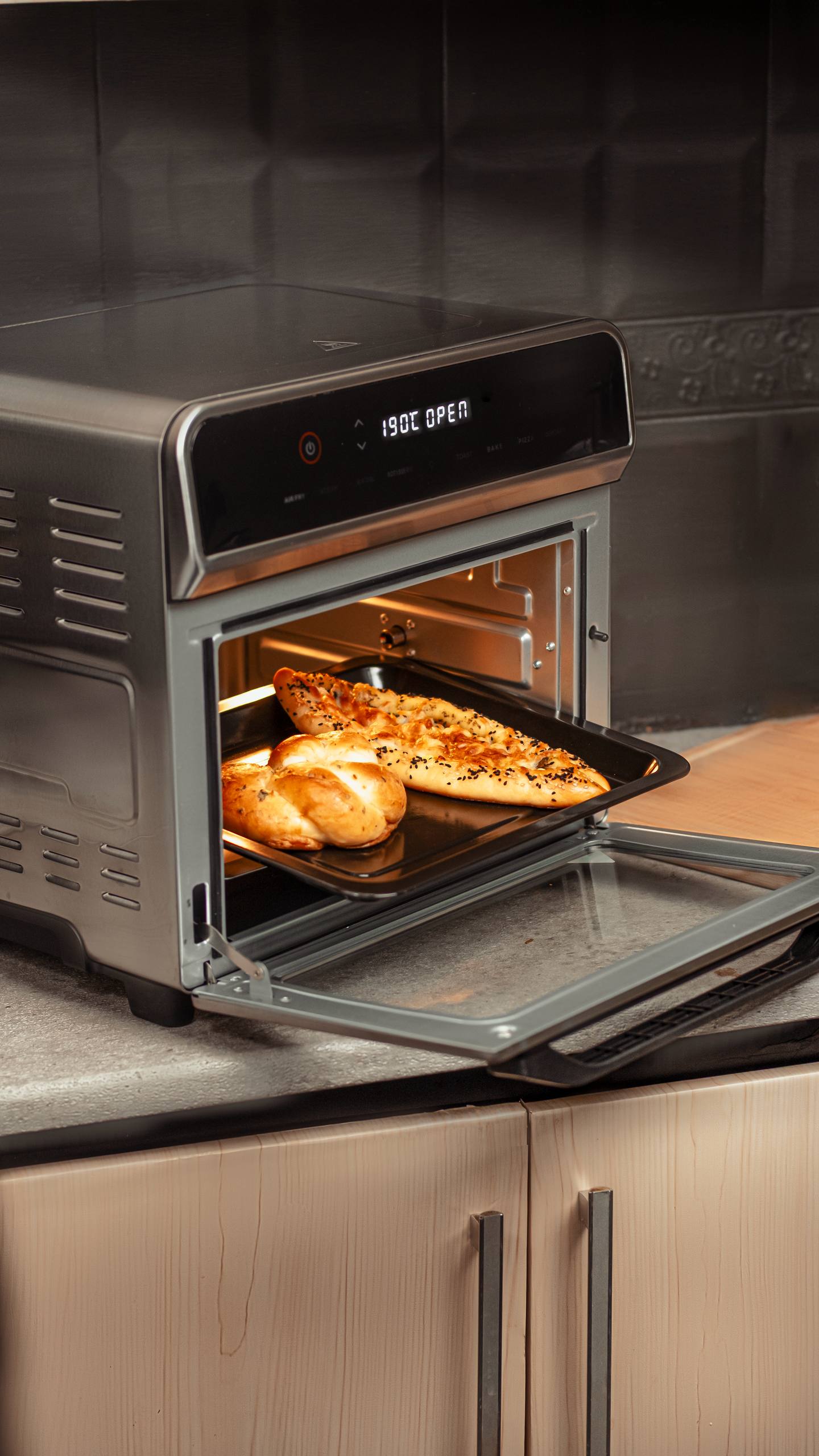 درِ شیشهای دوجداره برای حفظ گرما, طراحی چندمنظوره (۸ کار در ۱ دستگاه), ظرفیت بزرگ و صرفهجویی در زمان و انرژی, قابلیت مشاهده مراحل پخت, گردش هوای داغ برای پخت یکنواخت, مناسب برای پخت سالم و کمروغن
